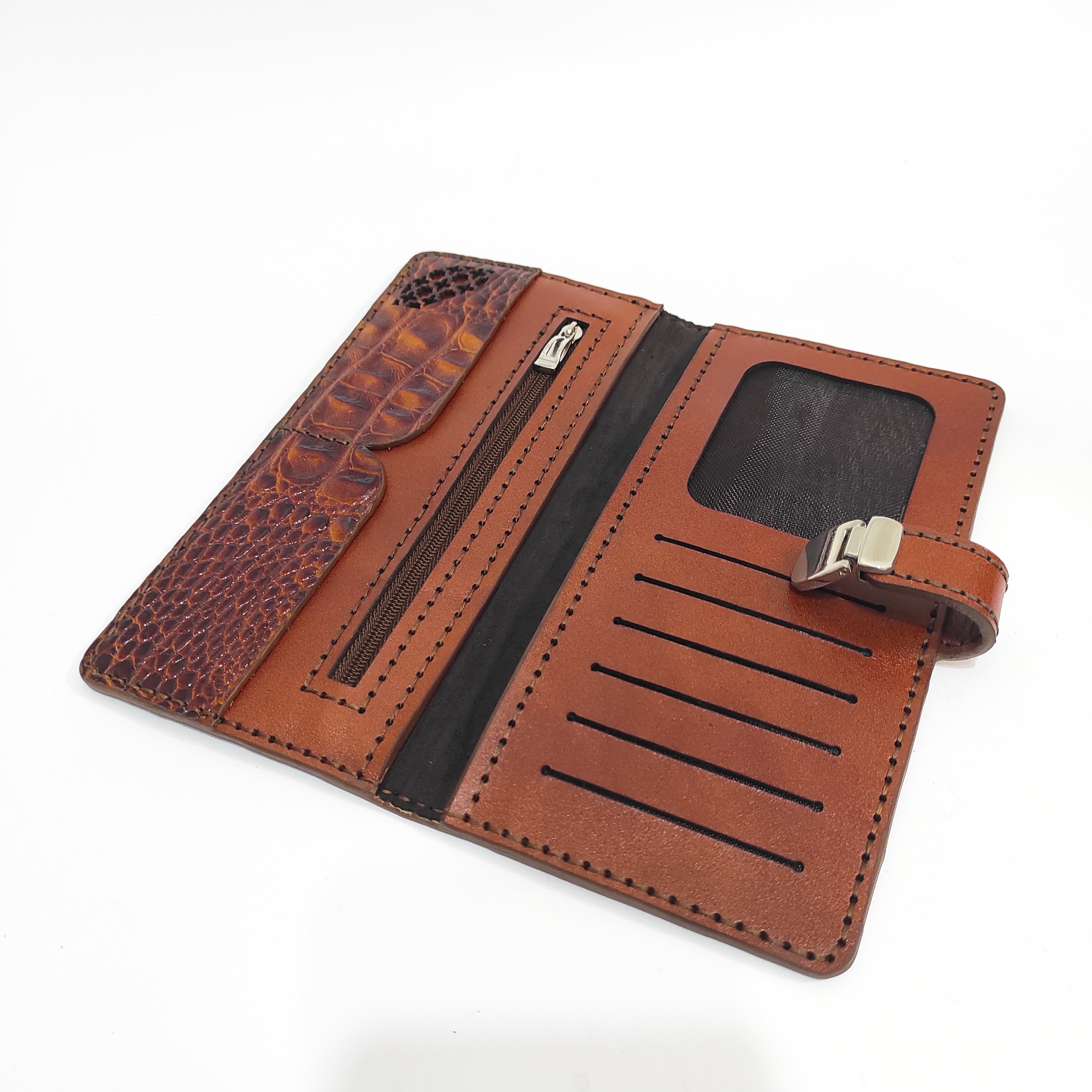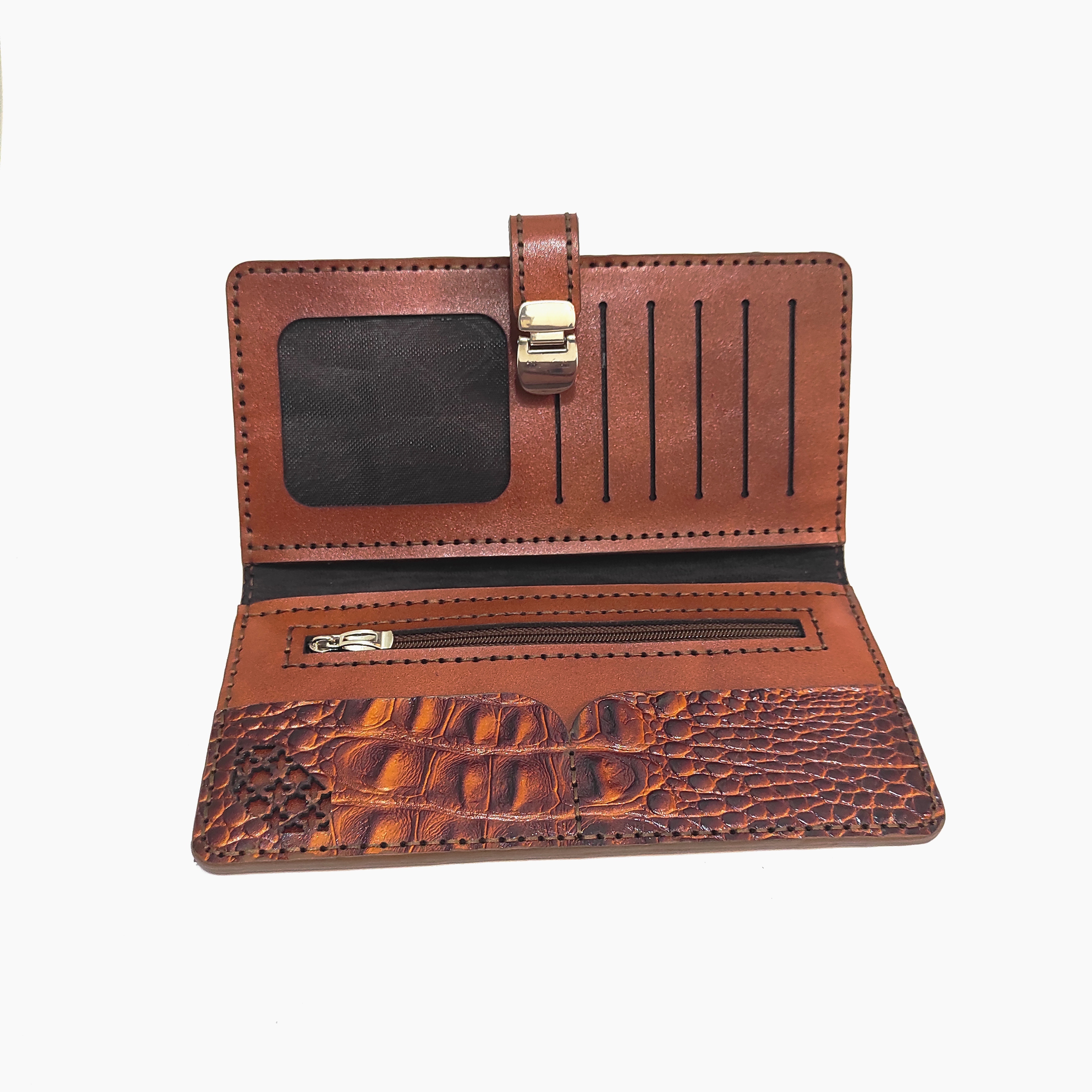 کیف پول چرمی زنانه طرح کروکدیل عسلی